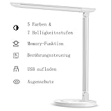 TaoTronics Schreibtischlampe LED 12W Büro Tischleuchte 5 Farb und 7 Helligkeitsstufen dimmbar Memory-Funktion USB-Anschluss für Aufladung des Smartphones Tischlampe Augenschutz Touchfeldbedienung
